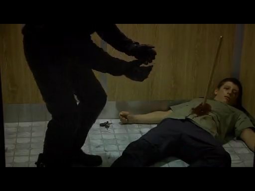 階段での鬼ごっこは、テロリストが感染者の頭部を撃ち終了。
