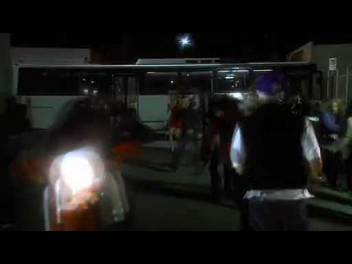ギルがバイクでローガン家に向かう途中で、バスでの踊り喰いや集団で向かってくるシーンはありますが、それほどインパクトのある絵でも無い。