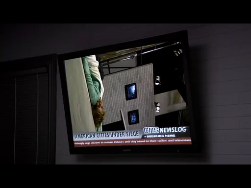 上司のカールからの電話で、他局と連携を取って報道するように言われるが、ローガンはあくまで自分の番組で事態が収拾するまで続けると言い張る。