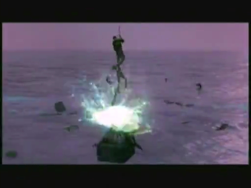 まず、アレックスが全然強そうじゃないのに普通に船内を歩き回る、あれだけの大きさのタンカーが爆沈してるのに普通に海に飛び込んで浮いてる、ロープで掴まってるだけの二人を巨大クモが握ってるだけ、ヘリの中の会話なのにアレックスが普通に参加してる(ローターの音で聞こえないだろ)、画像で分る通り巨大クモの爆発が安いCGな上に手榴弾で木っ端微塵・・・。