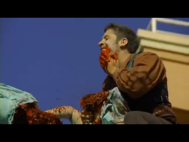 先発中のグリーブスの隊は、町で老婆を襲った怪物と交戦していた。怪物は、十字架を恐れず、3階から飛び降りても平気、隊員を襲って首に噛み付き血を飲む。