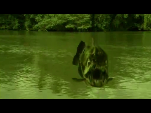 デタラメなサイズに成長したメガピラニア(出世魚のように呼称変更)は、船を沈め、町に特攻して破壊していた。もう一度、河を調べに行くと、フィギンズは単独行動をとり、残りは港に残った。「どうして、あんなに生き残ってるんだ?」というフィッチに「奴らの妊娠期間は、たったの6時間」とゴードン。