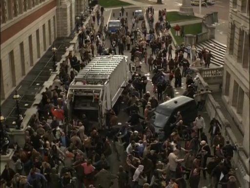 そこでパニックに陥った警官から、女性ニュースキャスターのジョー・プレイトンを救い、ホワイトホール(政府官庁)を目指すのだった・・・。