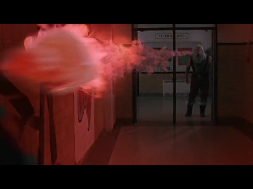 クリスマスが終るまで後58分・・・。いつのまにかカバンに入っていたおじいちゃんのプレゼント「クルミ割り人形」(日用品こそ最高の贈り物)。サタンクロースは上着を脱ぎ捨て、武装すると2人を追って焼却炉の煙突から学校内に侵入。