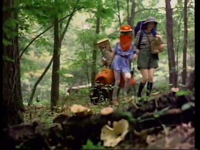 奇声を上げながら3人を寝袋に拘束した2人組は、森を抜けママが待つ家へと獲物を持ち帰る。