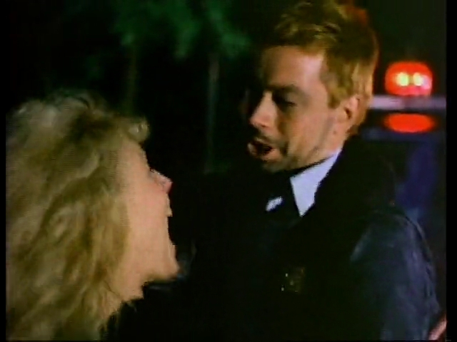 陽が沈み、林道でパトカーを見つけたトリナは、抱きついて助けを求める。