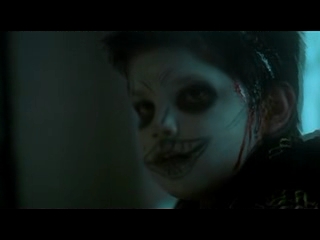 ところが、毛布の下から現れた姿は、頭から血を流したデーモン閣下のような白塗りの悪魔顔。驚いたリリーは部屋を飛び出して、居間にいた老婆に助けを求めるが、立ち上がった老婆は細身の手斧のような物で襲ってきた。