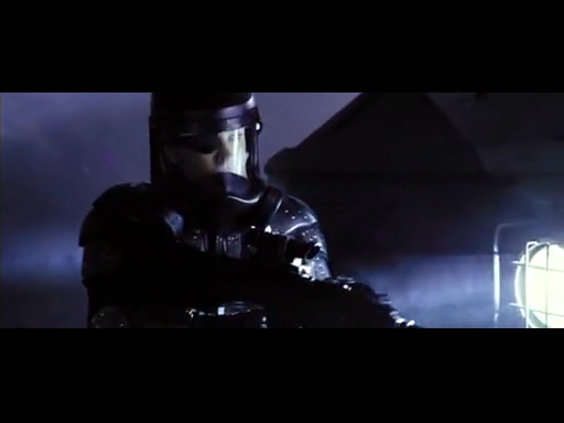 最先端の装備がすぐに使い物にならなくなる点や、隔離されたエリアへの侵入、肉弾戦になってしまう展開、権力者に小道具で一泡吹かせたり、力を見せた者が英雄になるラスト、など「ニューヨーク1997」と似たシーンが多く、女版スネークといった風格もあります。(どちらも片目ですし)