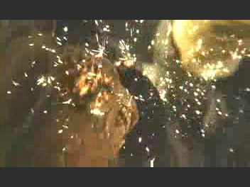 火が消える瞬間、マイケルがスイッチON!で、光に包まれた怪物はボロ雑巾のように四散しました・・・。