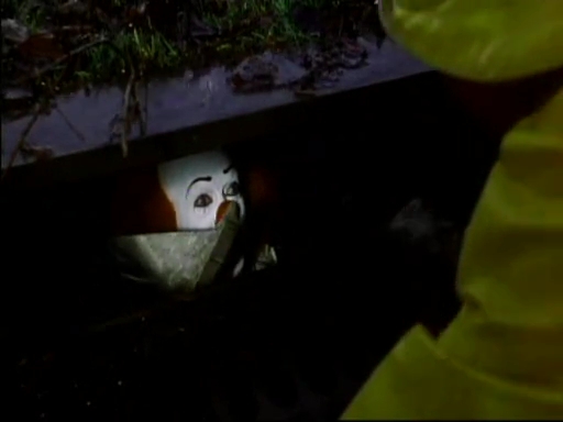 ピエロは、自分を踊る道化師ペニーワイズと名乗り、言葉巧みに警戒心を解くと、腕を伸ばしたジョージに襲い掛かる・・・。