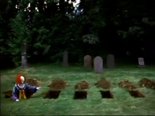 ふと、気配を感じて振り向くと、ペニーワイズが7つの墓穴を掘っていて、端っこはダメだよ、と指差す。